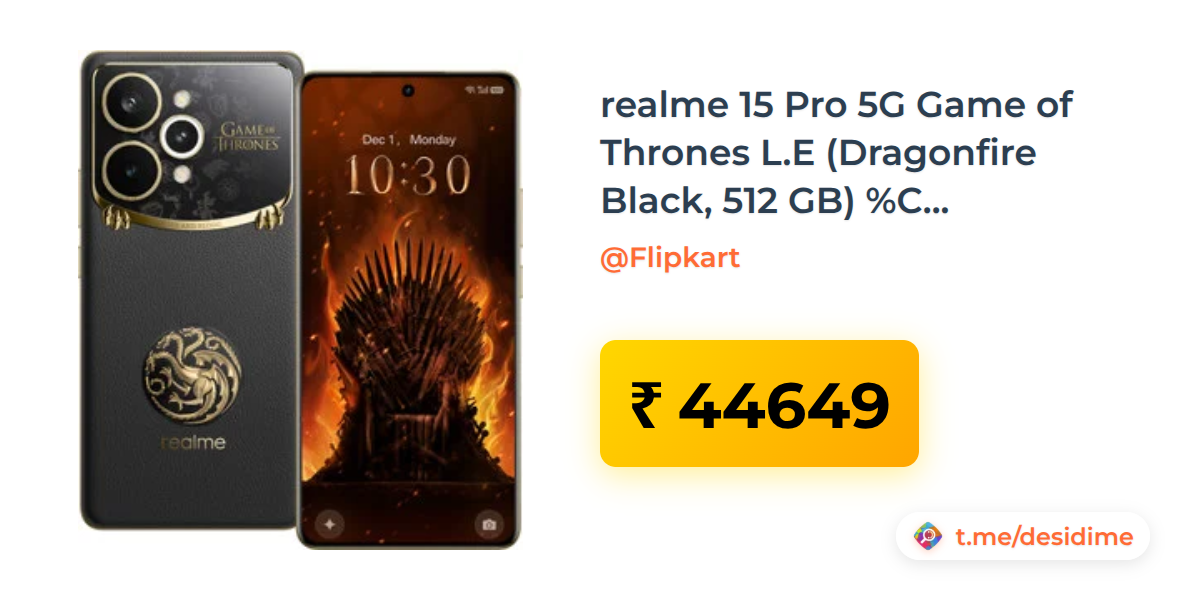 realme 15 Pro 5G Game of Thrones L.E (Dragonfire Black, 512 GB)  (12 GB RAM) - Rs. 44649