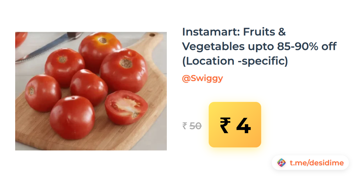 92% off on - Instamart: Fruits & Vegetables upto 85-90% off (Location -specific) - Rs. 4
