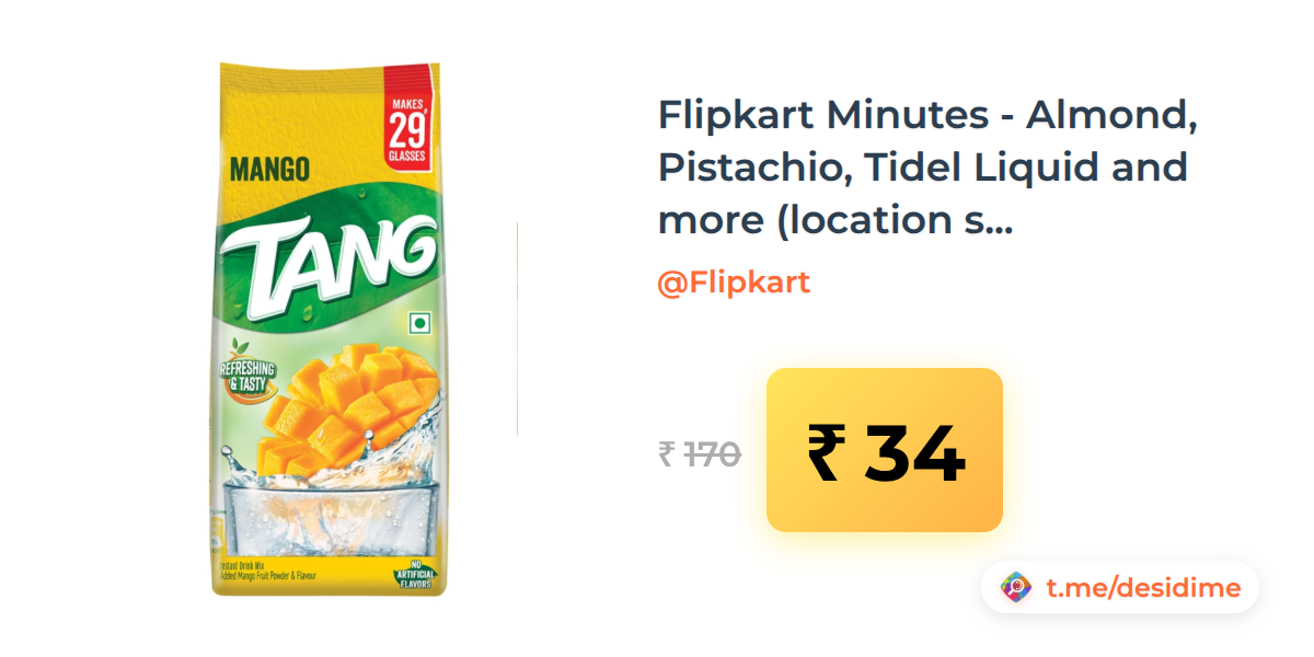 80% off on - Flipkart Minutes - Almond, Pistachio, Tidel Liquid and more (location specific) - Rs. 34