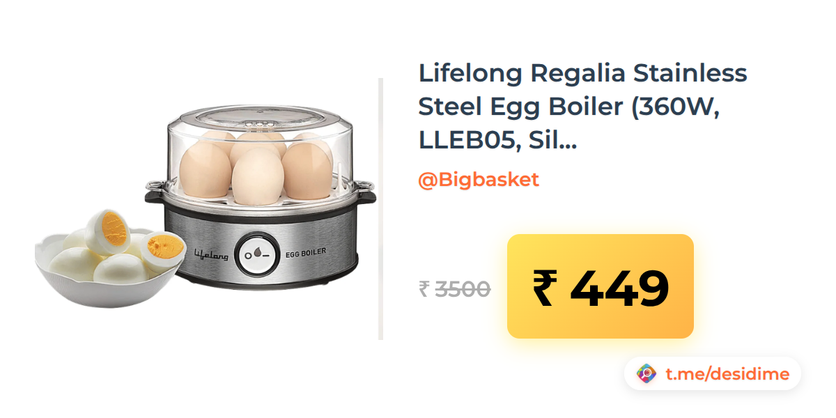 87% off on - Lifelong Regalia Stainless Steel Egg Boiler (360W, LLEB05, Silver & Black)(location specific) - Rs. 449
