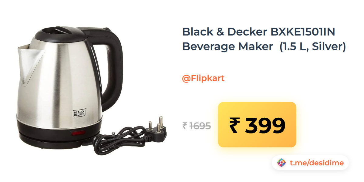 76% off on - Black & Decker BXKE1501IN Beverage Maker  (1.5 L, Silver) - Rs. 399