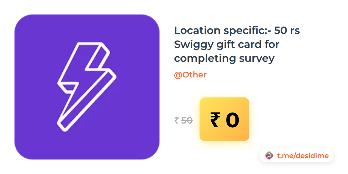 100% off on - Location specific:- 50 rs Swiggy gift card for completing survey - Rs. 0