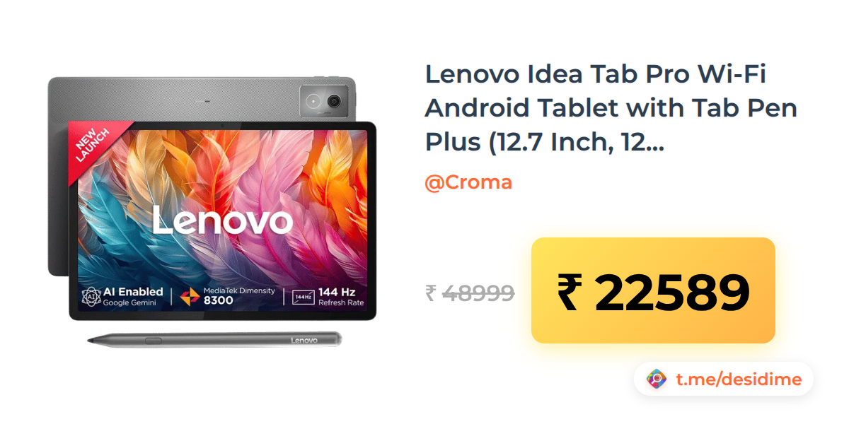 54% off on - Lenovo Idea Tab Pro Wi-Fi Android Tablet with Tab Pen Plus (12.7 Inch, 12GB RAM, 256GB ROM) - Rs. 22589