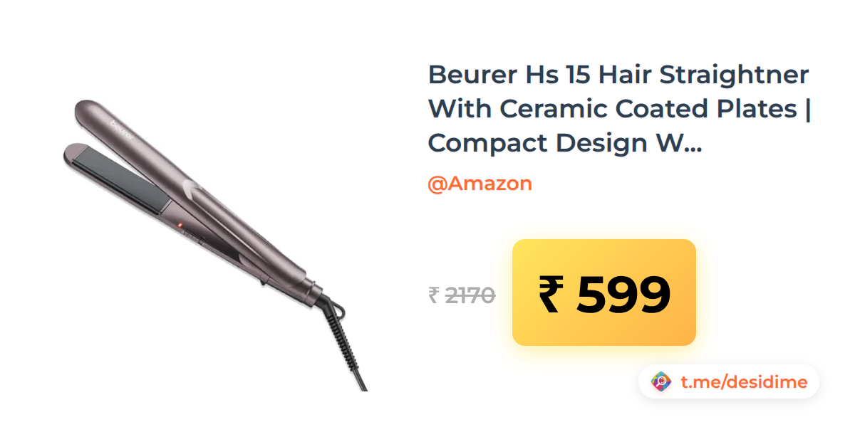 72% off on - Beurer Hs 15 Hair Straightner With Ceramic Coated Plates | Compact Design With Light Weight, Suitable For All Kind Of Hair., Grey - Rs. 599