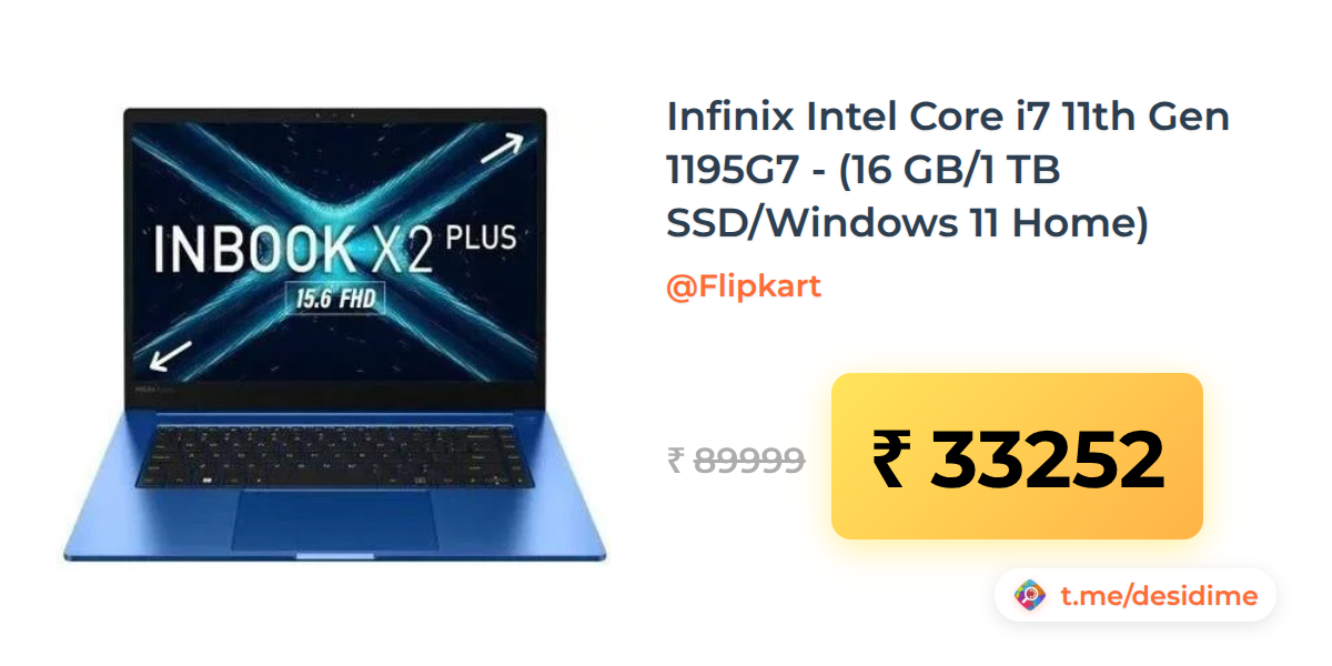 63% off on - Infinix Intel Core i7 11th Gen 1195G7 - (16 GB/1 TB SSD/Windows 11 Home) - Rs. 33252