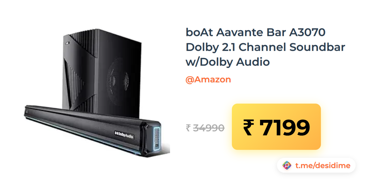 79% off on - boAt Aavante Bar A3070 Dolby 2.1 Channel Soundbar w/Dolby Audio - Rs. 7199