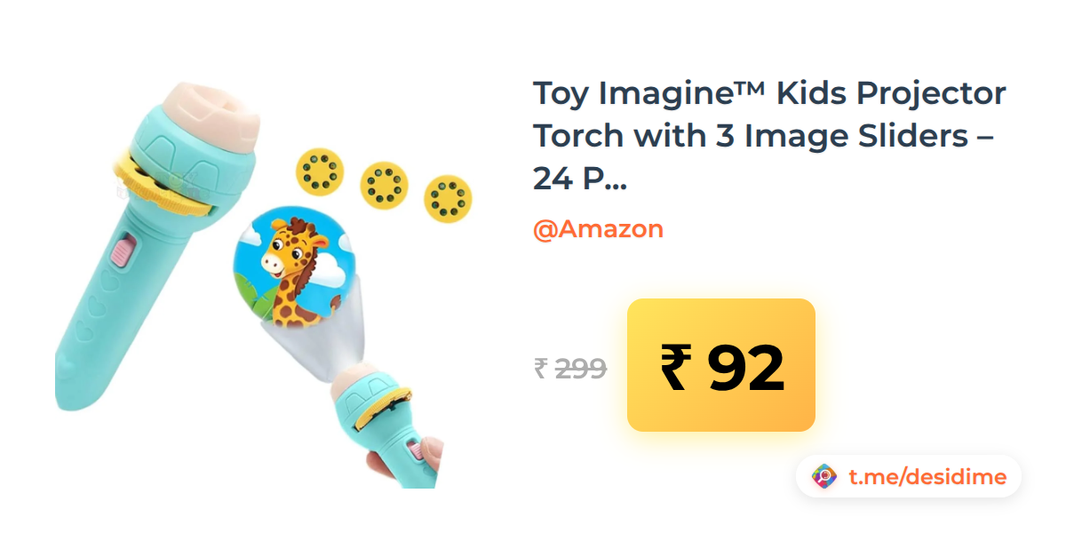 69% off on - Toy Imagine™ Kids Projector Torch with 3 Image Sliders – 24 Picture Projections Night Light Toy - Rs. 92