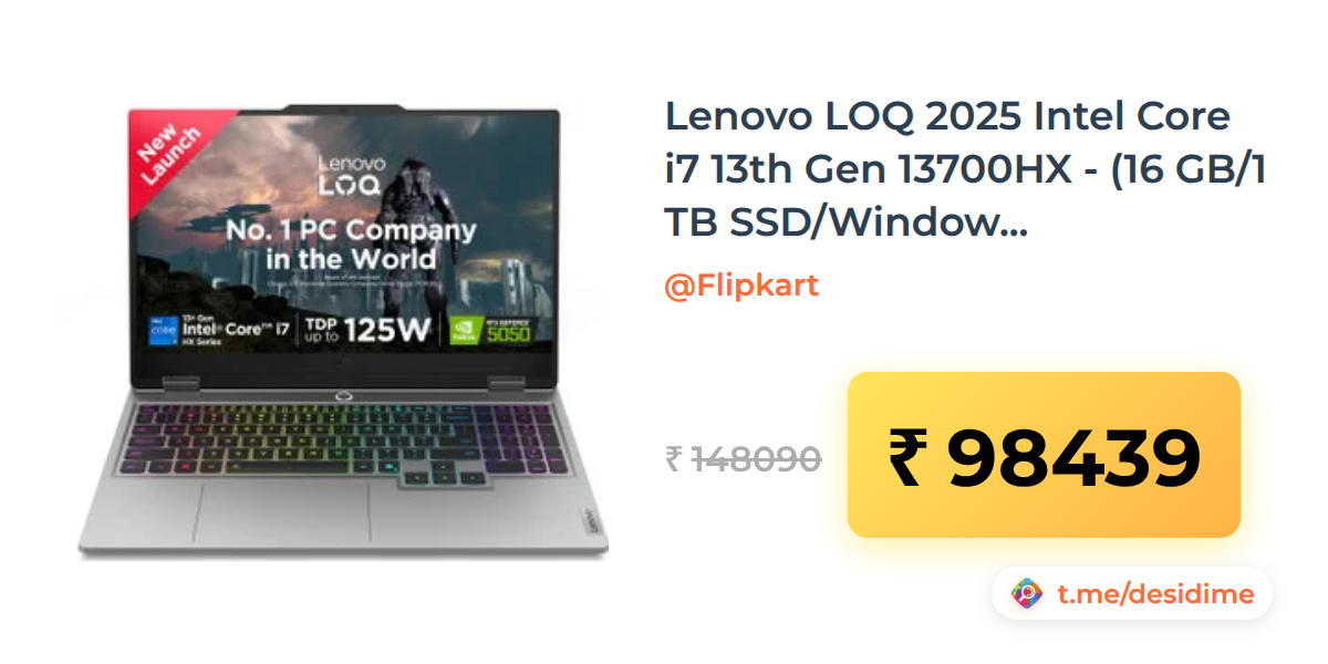 34% off on - Lenovo LOQ 2025 Intel Core i7 13th Gen 13700HX - (16 GB/1 TB SSD/Windows 11 Home/8 GB Graphics) Laptop - Rs. 98439