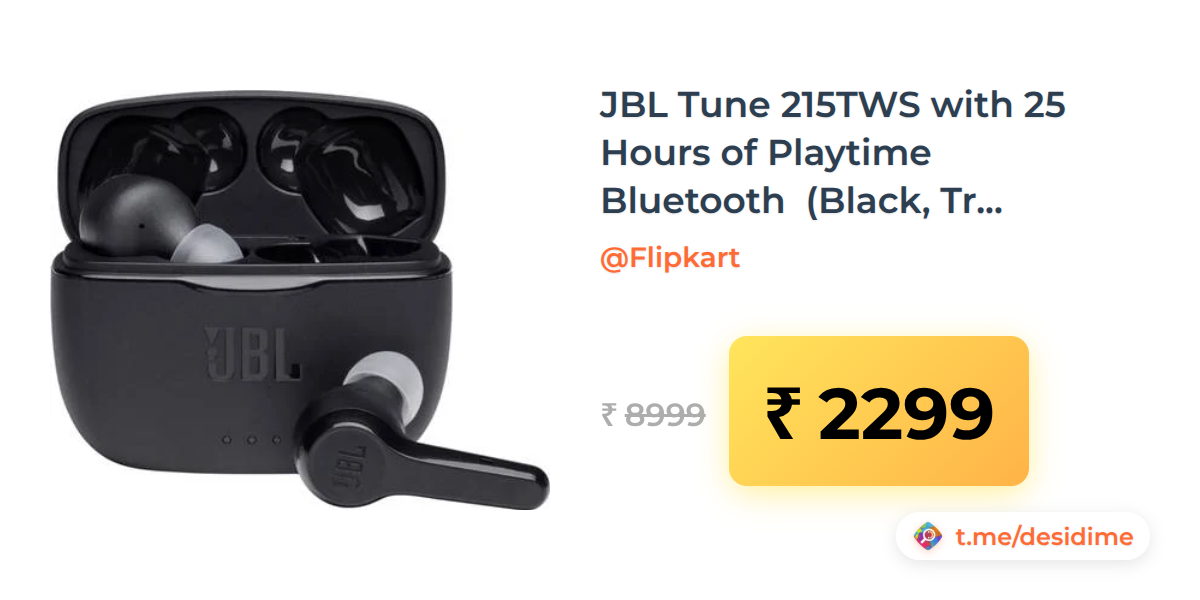74% off on - JBL Tune 215TWS with 25 Hours of Playtime Bluetooth (Black, True Wireless) - Rs. 2299