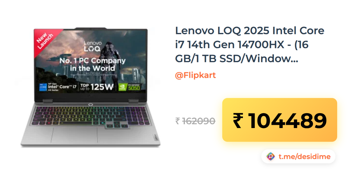 36% off on - Lenovo LOQ 2025 Intel Core i7 14th Gen 14700HX - (16 GB/1 TB SSD/Windows 11 Home/8 GB Graphics) Laptop - Rs. 104489