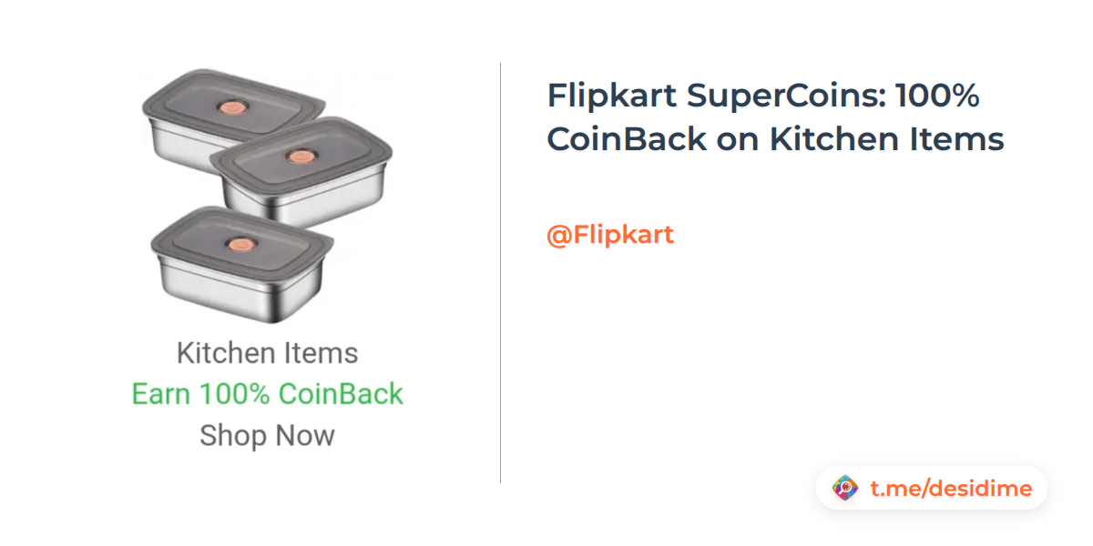 Flipkart SuperCoins: 100% CoinBack on Kitchen Items
