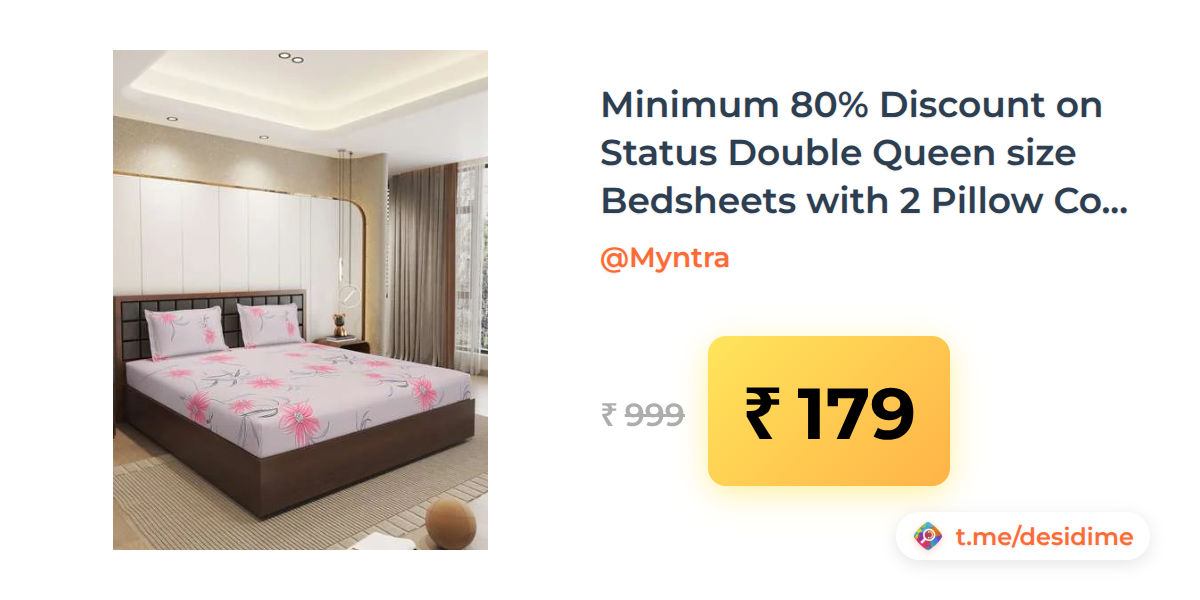 82% off on - Minimum 80% Discount on Status Double Queen size Bedsheets with 2 Pillow Covers - Rs. 179