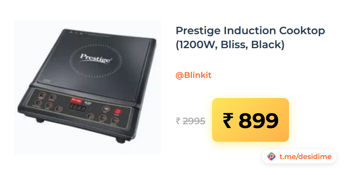 70% off on - Prestige Induction Cooktop (1200W, Bliss, Black) - Rs. 899