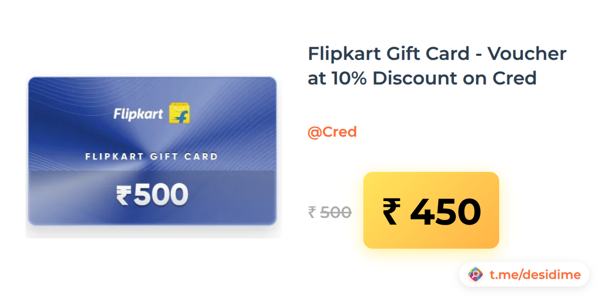 10% off on - Flipkart Gift Card - Voucher at 10% Discount on Cred - Rs. 450