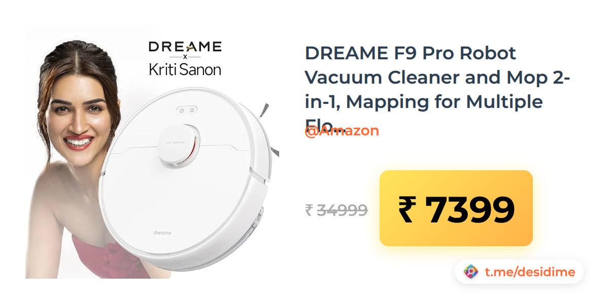 79% off on - DREAME F9 Pro Robot Vacuum Cleaner and Mop 2-in-1, Mapping for Multiple Floors, Lidar Navigation - Rs. 7399
