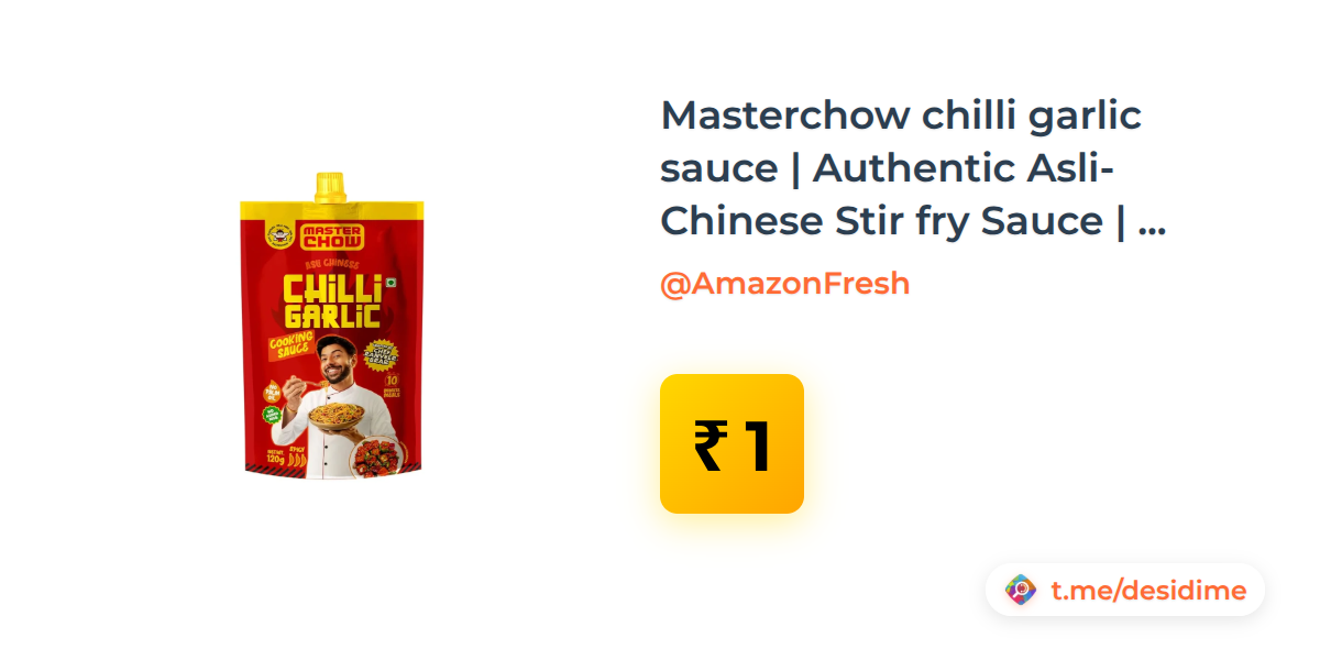 99% off on - Masterchow chilli garlic sauce | Authentic Asli-Chinese Stir fry Sauce | No added MSG and Preservatives | Easy to use Packaging | Spout 120 GM - Rs. 1