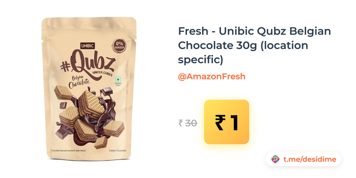 97% off on - Fresh - Unibic Qubz Belgian Chocolate 30g (location specific) - Rs. 1