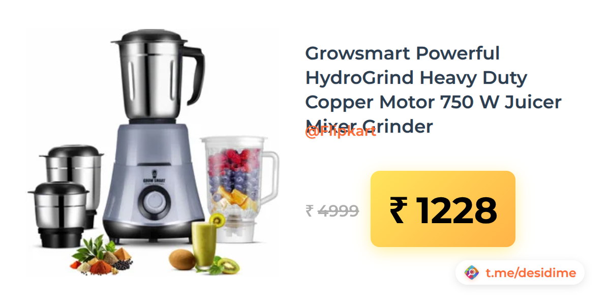 75% off on - Growsmart Powerful HydroGrind Heavy Duty Copper Motor 750 W Juicer Mixer Grinder - Rs. 1228