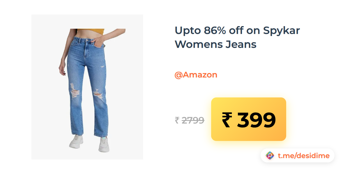 86% off on - Upto 86% off on Spykar Womens Jeans - Rs. 399