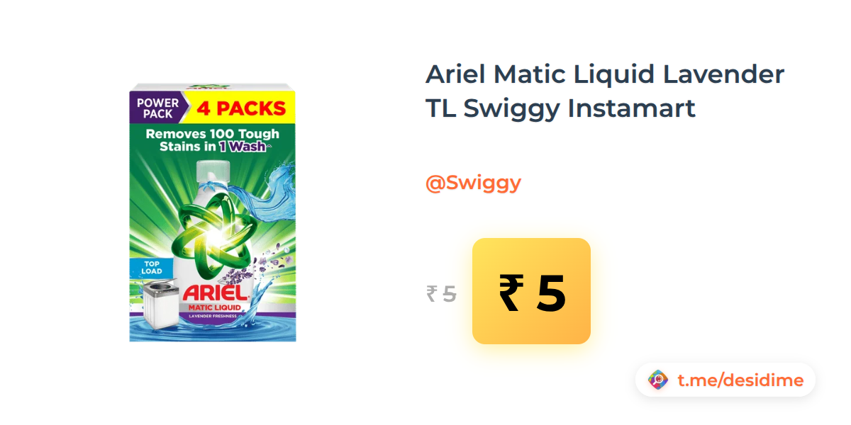 Ariel Matic Liquid Lavender TL Swiggy Instamart - Rs. 5