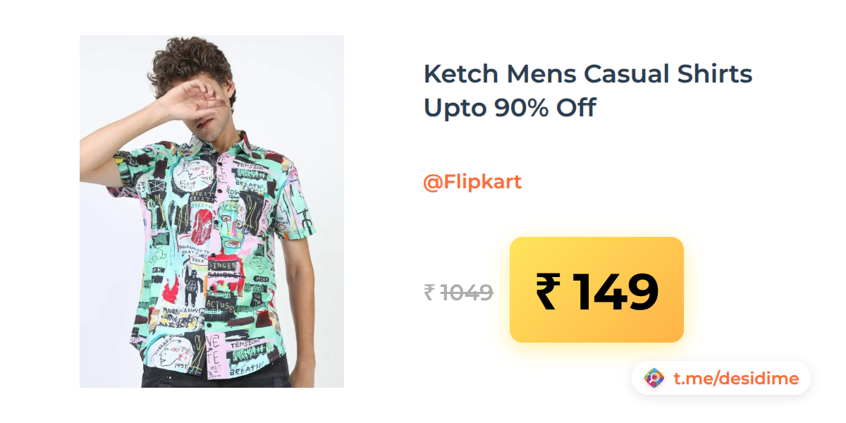 86% off on - Ketch Mens Casual Shirts Upto 90% Off - Rs. 149