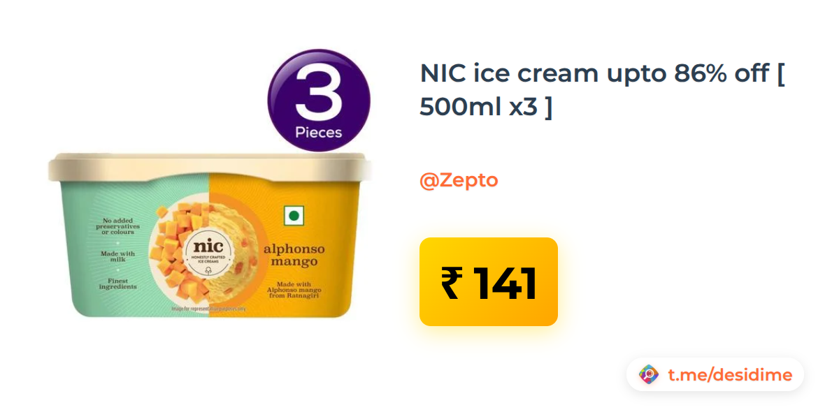 🌡572 ° - NIC ice cream upto 86% off [ 500ml x3 ] - Rs 141