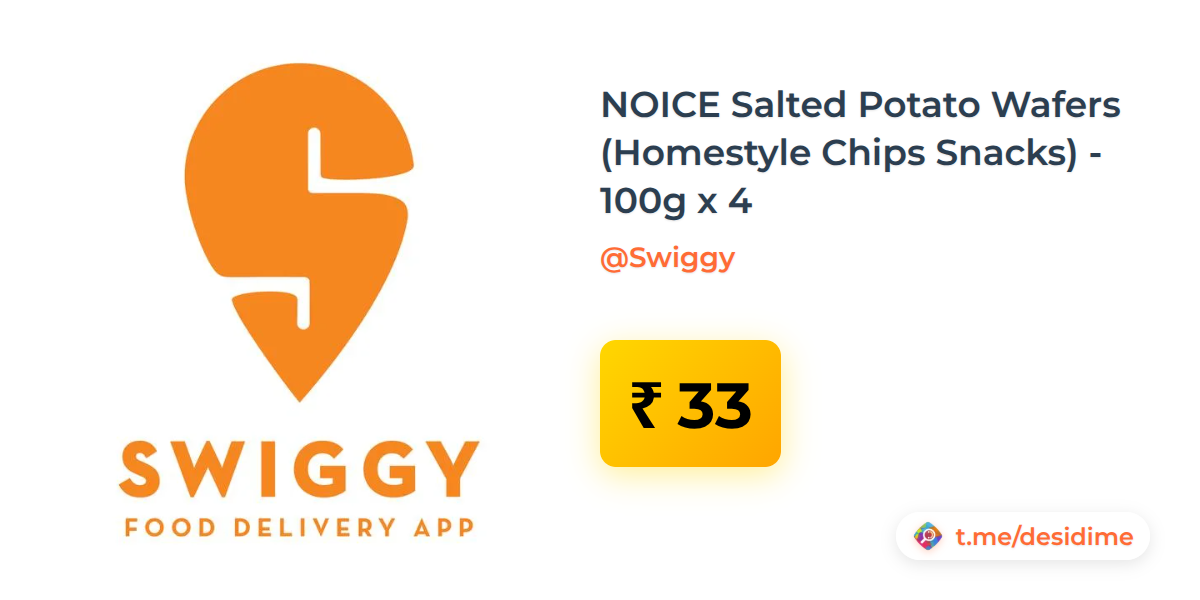 90% off on - NOICE Salted Potato Wafers (Homestyle Chips Snacks) - 100g x 4 - Rs. 33