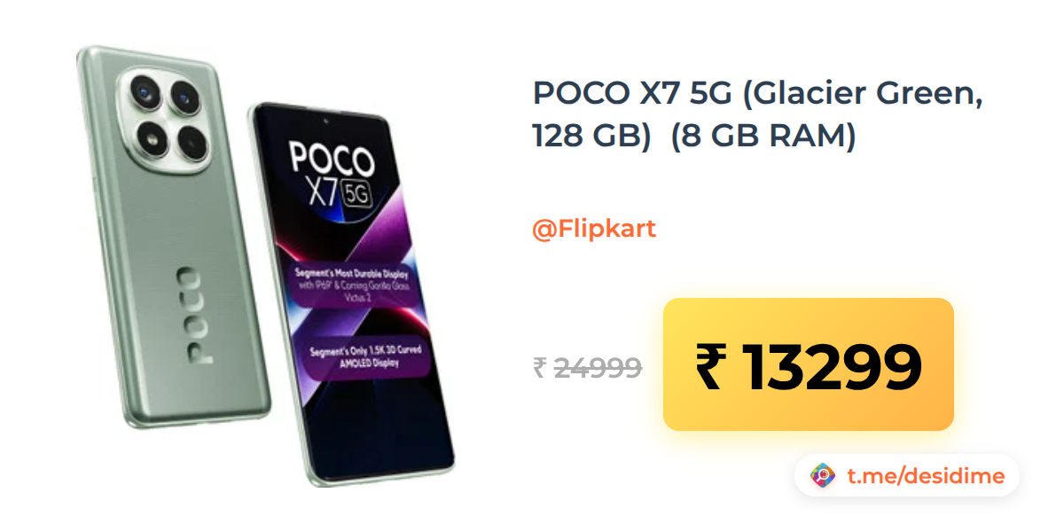 47% off on - POCO X7 5G (Glacier Green, 128 GB) (8 GB RAM) - Rs. 13299