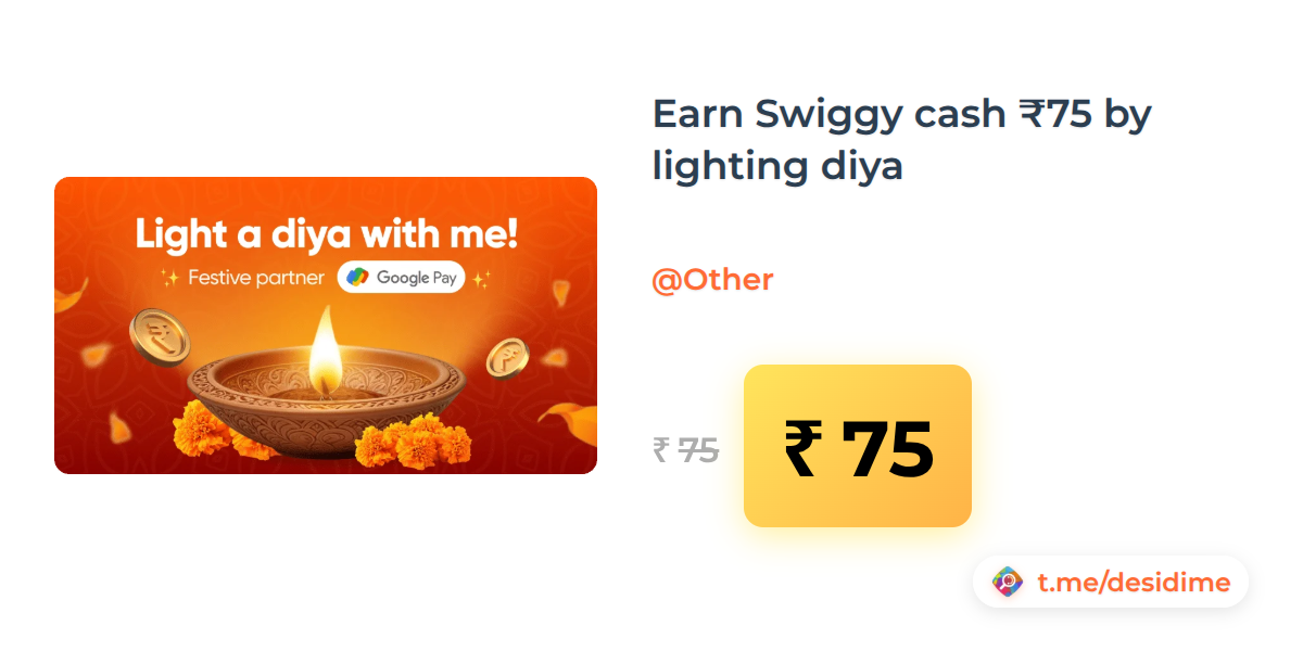 100% off on - Earn Swiggy cash ₹75 by lighting diya - Rs. 75