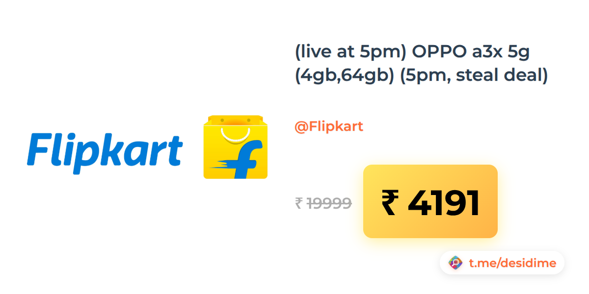 79% off on - (live at 5pm) OPPO a3x 5g (4gb,64gb) (5pm, steal deal) - Rs. 4191