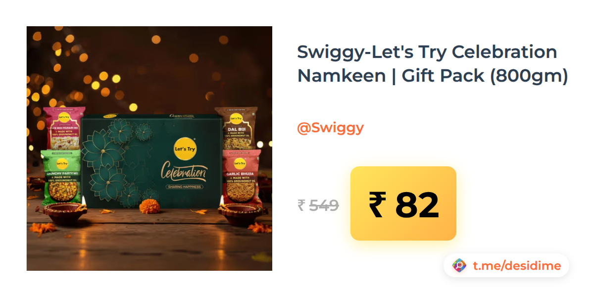 85% off on - Swiggy-Let's Try Celebration Namkeen | Gift Pack (800gm) - Rs. 82