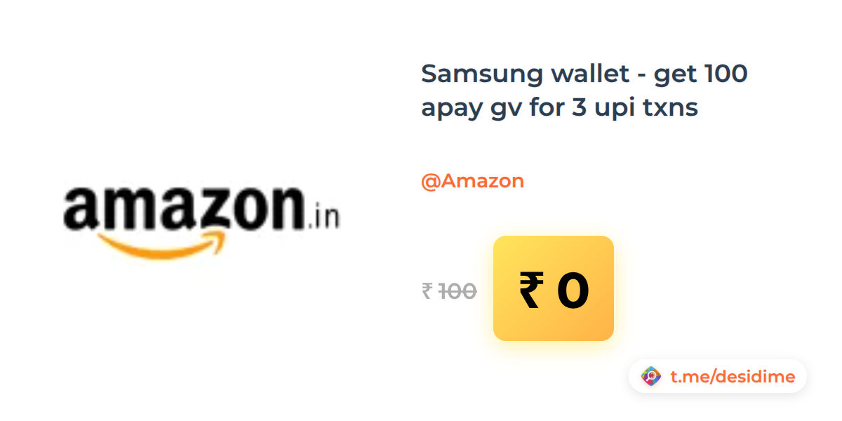 100% off on - Samsung wallet - get 100 apay gv for 3 upi txns - Rs. 0