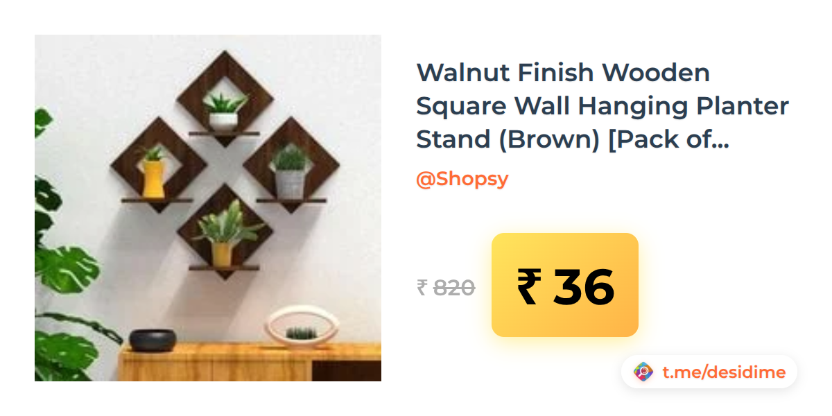 96% off on - Walnut Finish Wooden Square Wall Hanging Planter Stand (Brown) [Pack of 4] - Rs. 36