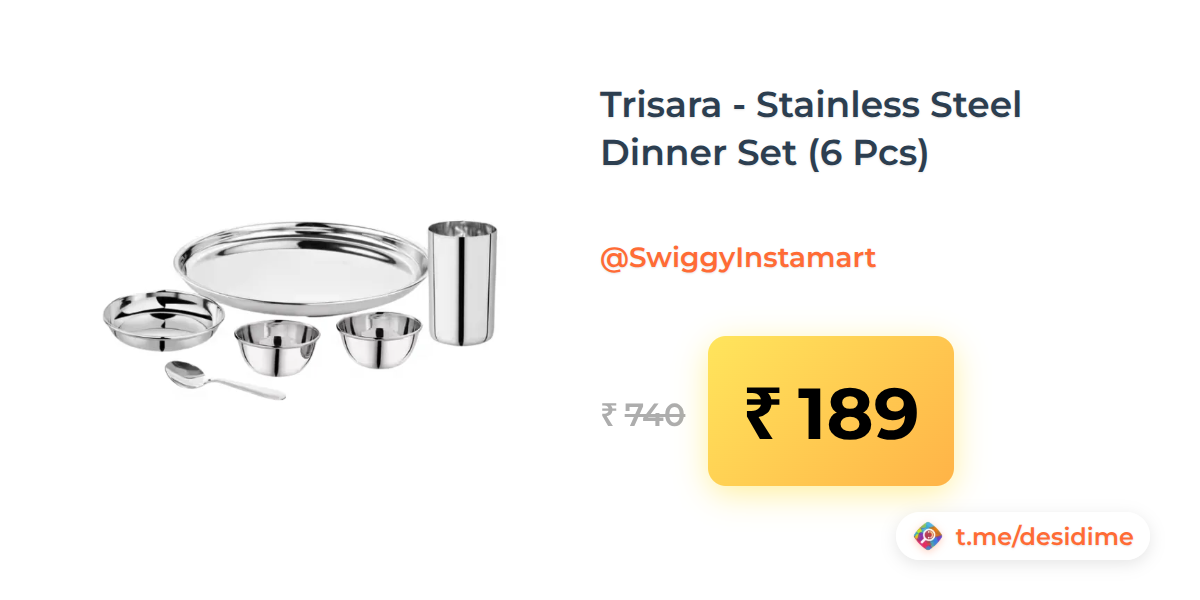 74% off on - Trisara - Stainless Steel Dinner Set (6 Pcs) - Rs. 189