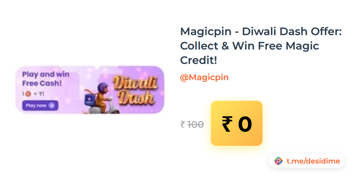100% off on - Magicpin - Diwali Dash Offer: Collect & Win Free Magic Credit! - Rs. 0