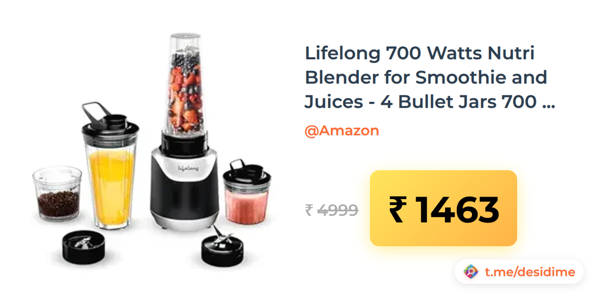 71% off on - Lifelong 700 Watts Nutri Blender for Smoothie and Juices - 4 Bullet Jars 700 & 500ml - Rs. 1463