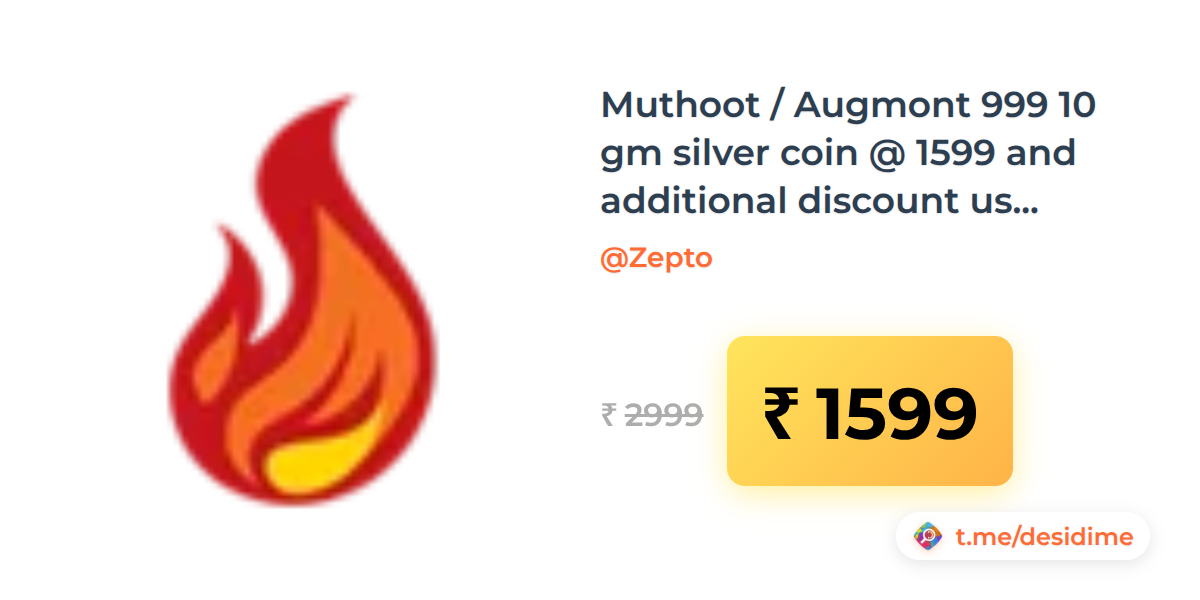 47% off on - Muthoot / Augmont 999 10 gm silver coin @ 1599 and additional discount using CC on Zepto - Rs. 1599