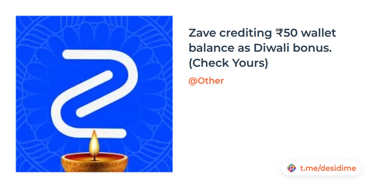 Zave crediting ₹50 wallet balance as Diwali bonus. (Check Yours)