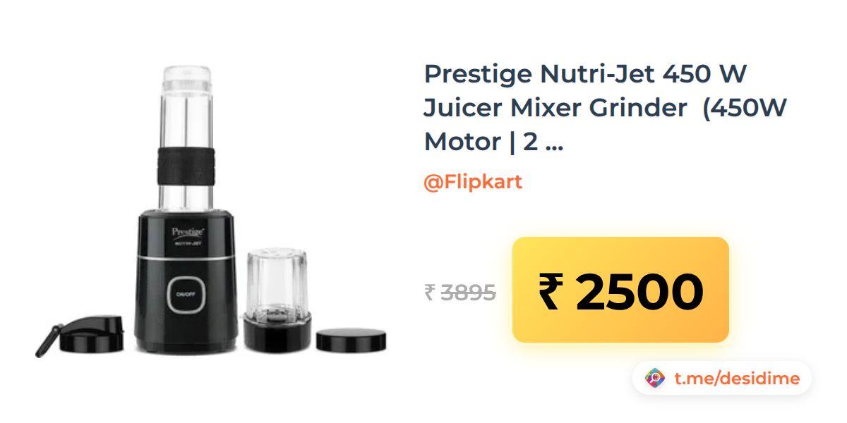 36% off on - Prestige Nutri-Jet 450 W Juicer Mixer Grinder (450W Motor | 2 Jars | Black) - Rs. 2500