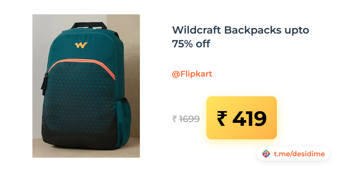 75% off on - Wildcraft Backpacks upto 75% off - Rs. 419