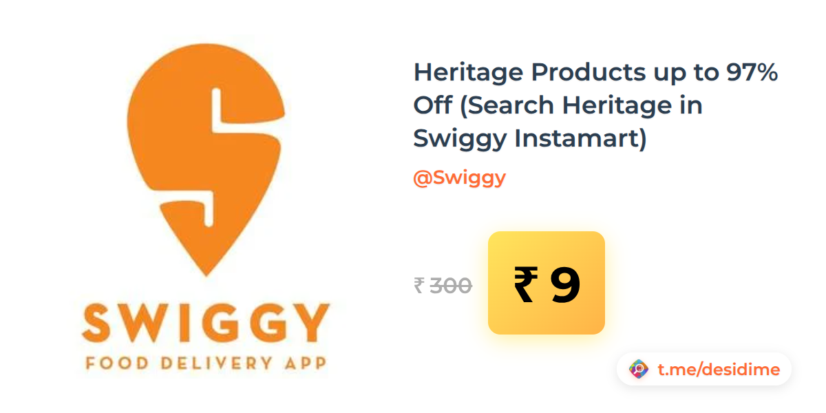 97% off on - Heritage Products up to 97% Off (Search Heritage in Swiggy Instamart) - Rs. 9