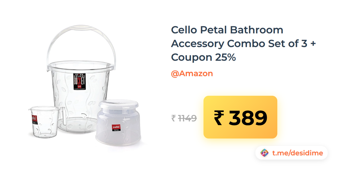 66% off on - Cello Petal Bathroom Accessory Combo Set of 3 + Coupon 25% - Rs. 389