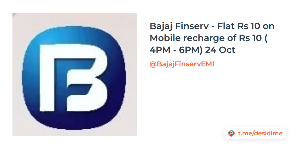 Bajaj Finserv - Flat Rs 10 on Mobile recharge of Rs 10 ( 4PM - 6PM) 24 Oct
