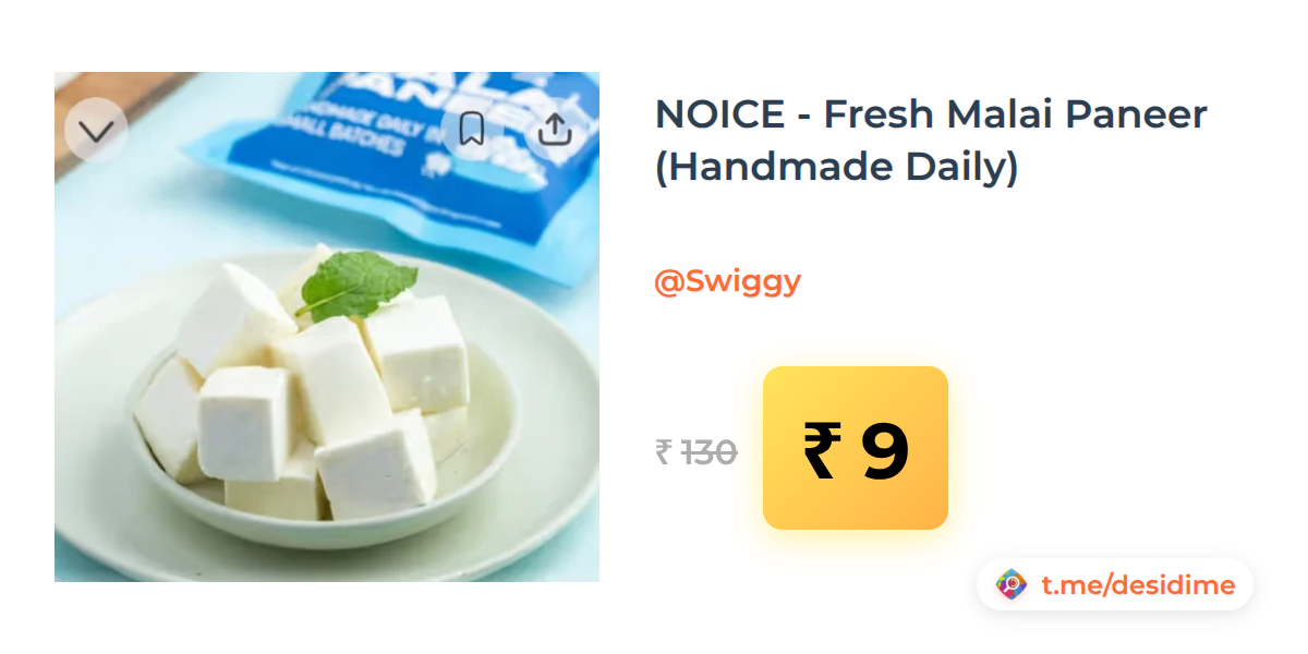 93% off on - NOICE - Fresh Malai Paneer (Handmade Daily) - Rs. 9