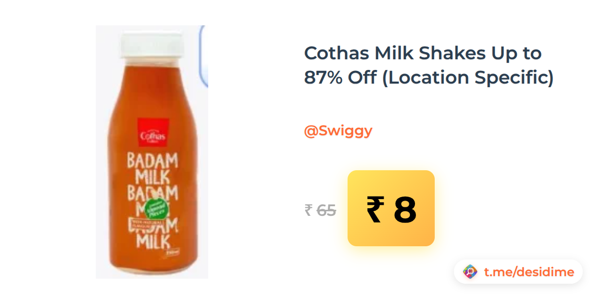 88% off on - Cothas Milk Shakes Up to 87% Off (Location Specific) - Rs. 8