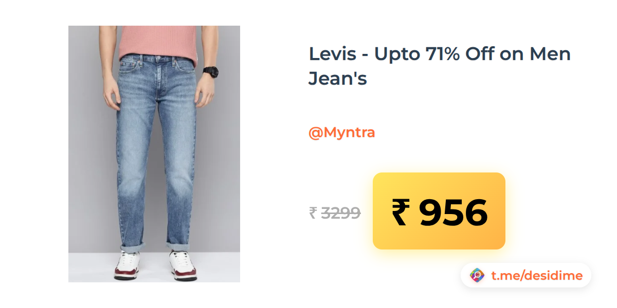 71% off on - Levis - Upto 71% Off on Men Jean's - Rs. 956