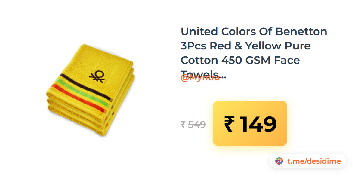 73% off on - United Colors Of Benetton 3Pcs Red & Yellow Pure Cotton 450 GSM Face Towels - Face Towels - Rs. 149