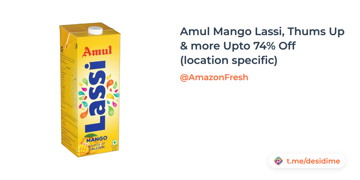 Amul Mango Lassi, Thums Up & more Upto 74% Off (location specific)