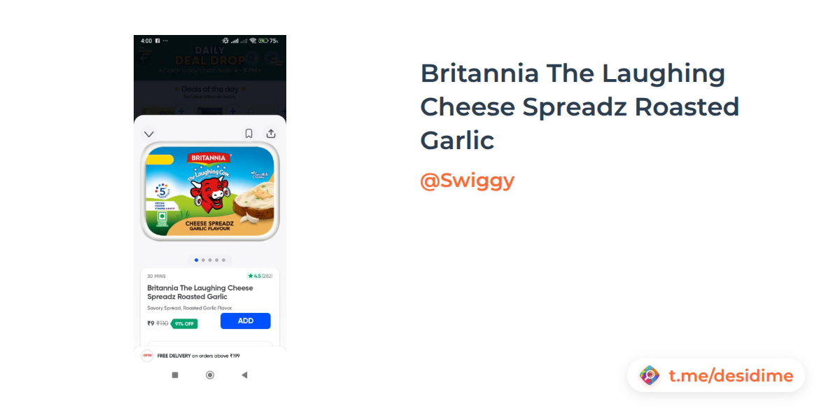 94% off on - Mooz cheese at 18 rs - Rs. 18