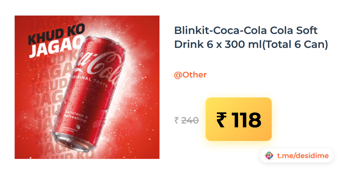 51% off on - Blinkit-Coca-Cola Cola Soft Drink 6 x 300 ml(Total 6 Can) - Rs. 118